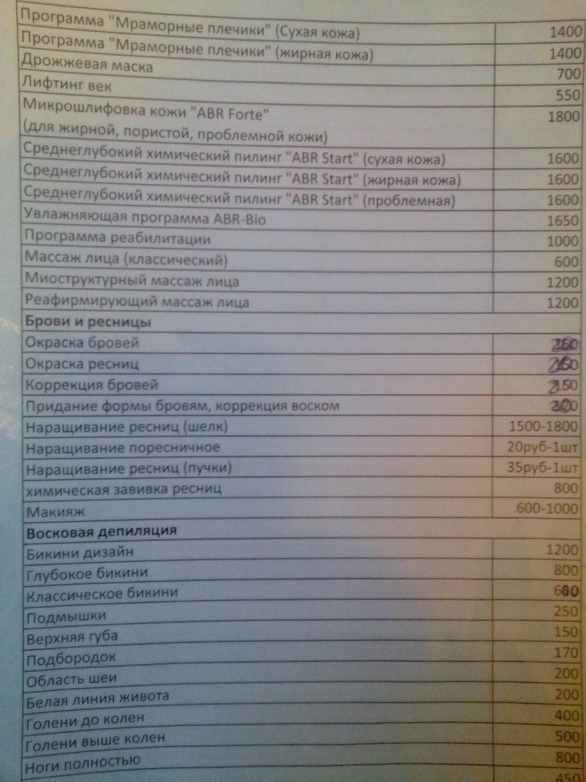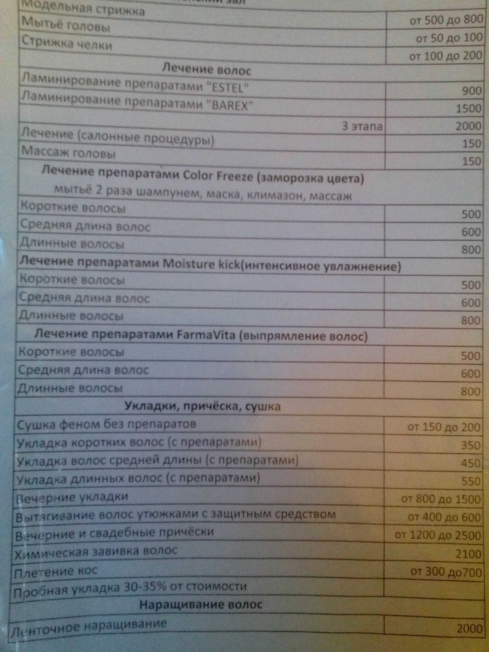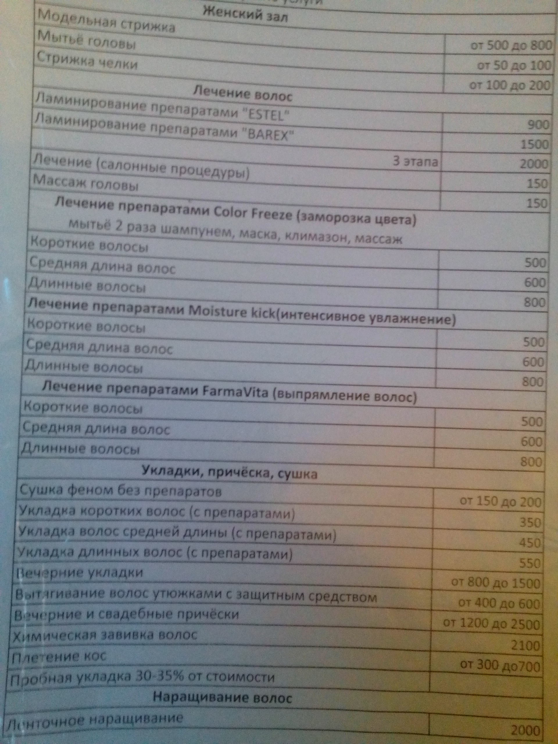 И фото прайс-листа студии: