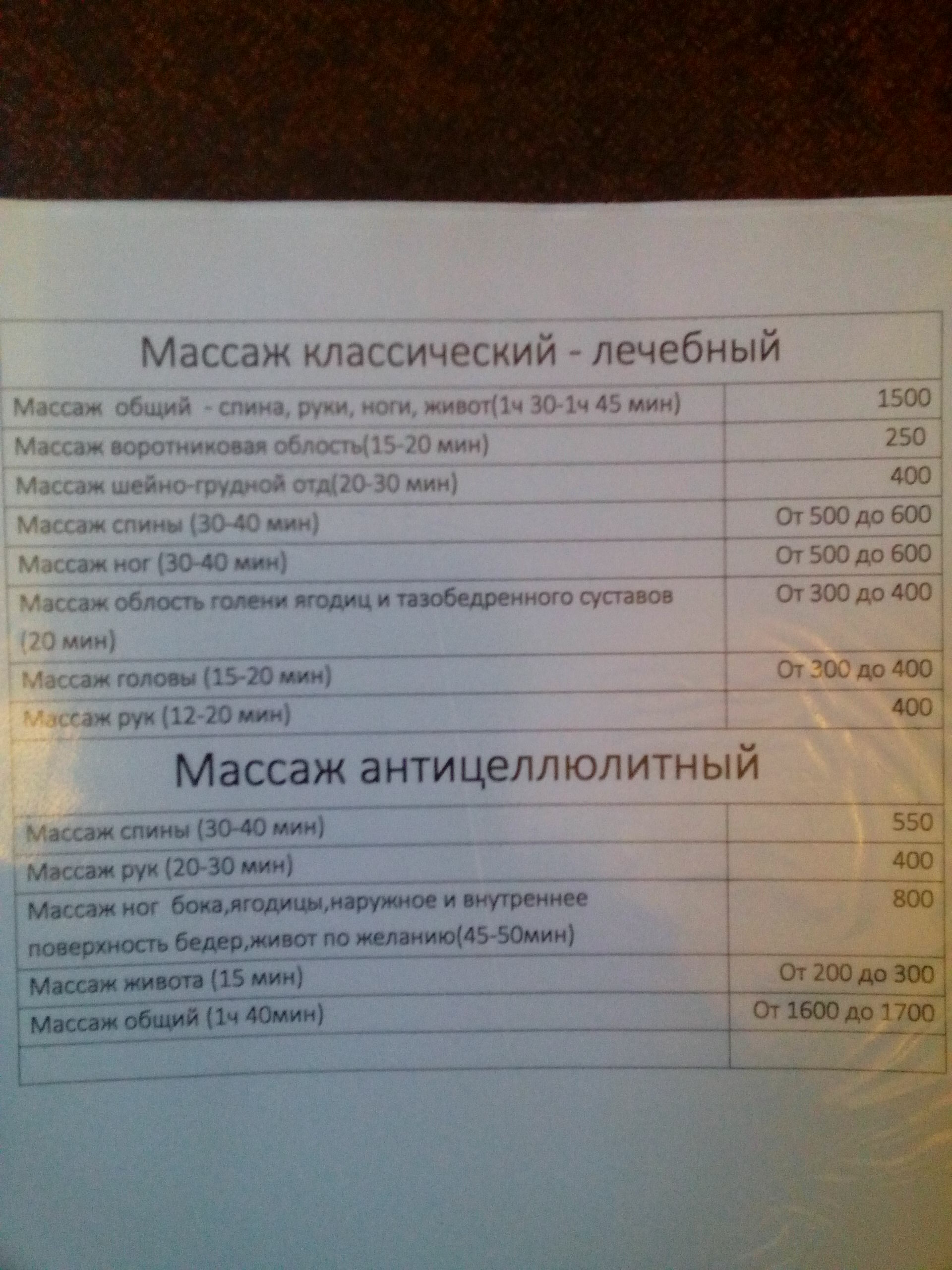 И другое, включая несколько видов массажа, в том числе и медицинского.