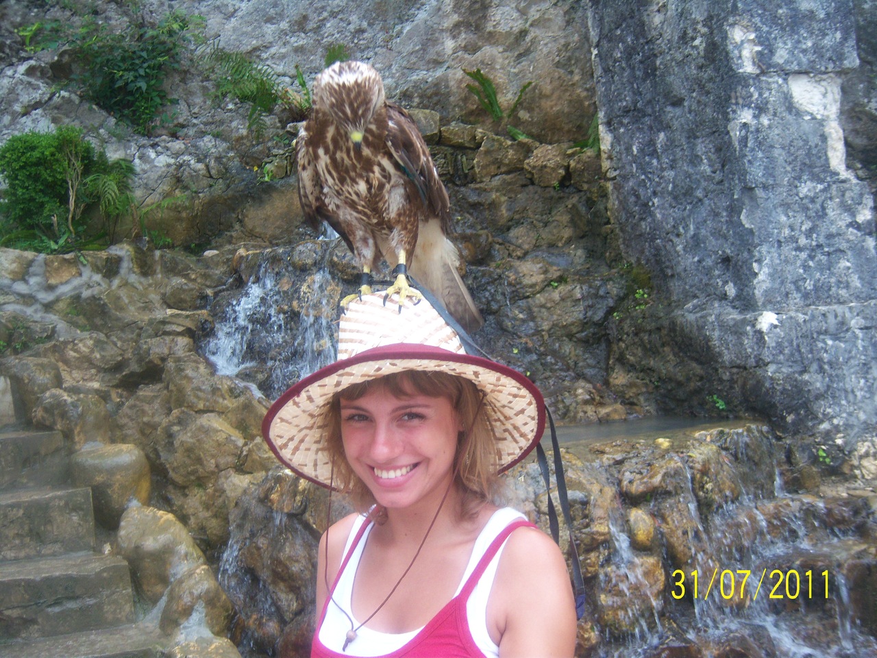 А этим летом делегация из Рязани побывала в Абхазии, в Новом Афоне одна из наших девушек пролила на себя ликер во время дегустации, а после сфоткалась с орлом на голове. Знай наших!